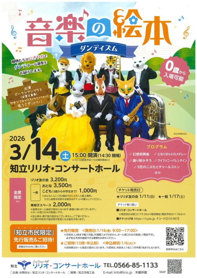 2026年3月14日(土) 15時開演の「音楽の絵本 ダンディズム」公演情報をUPしました。